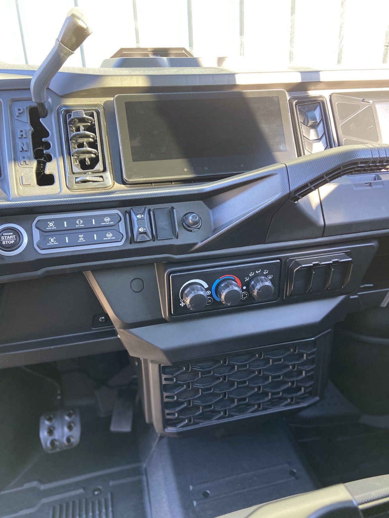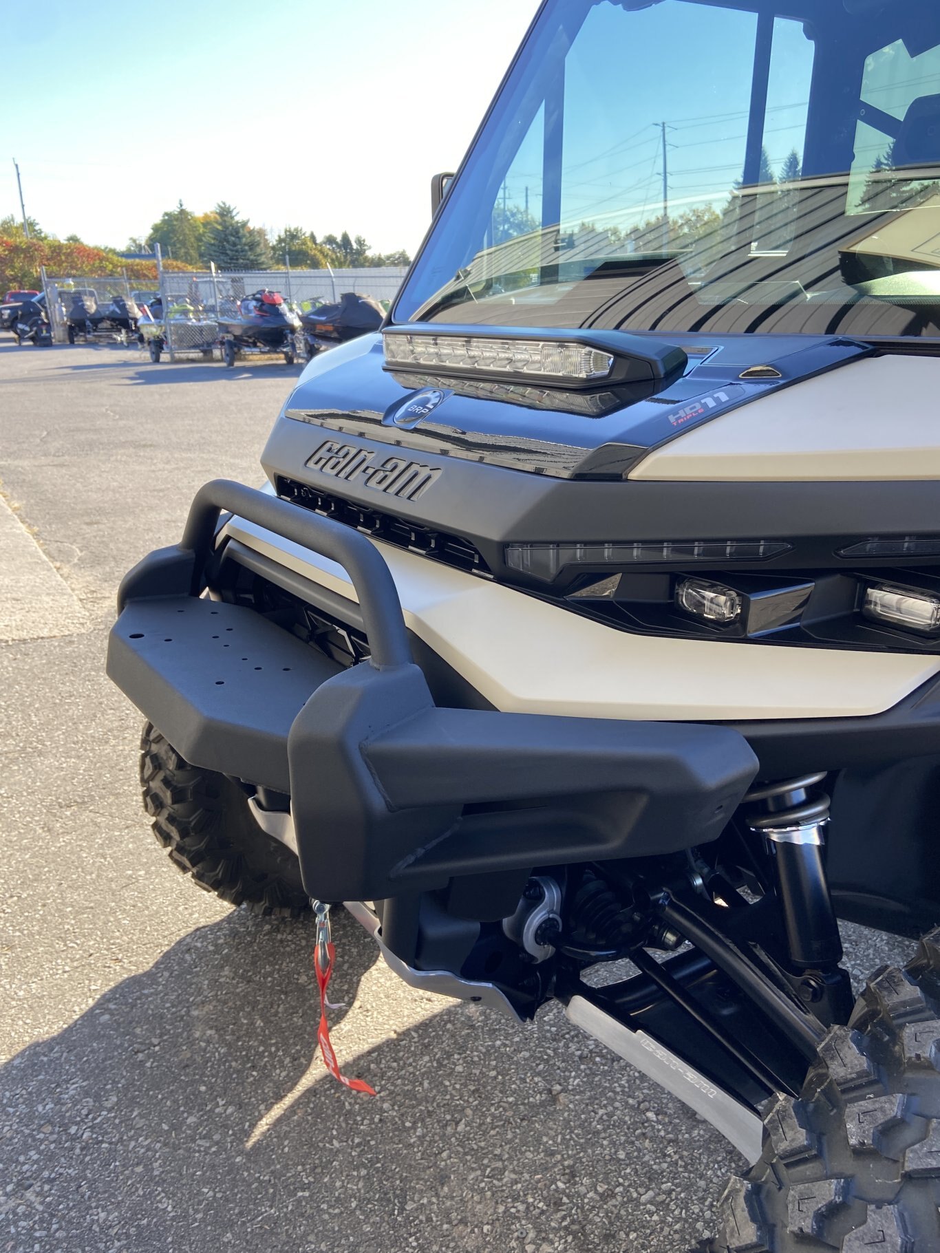 Full glass tilt up windshield with wiper kit, Full color match doors with locks and electric opening tinted windows, Rear tinted glass window, Panoramic mirror, Full heavy-duty HMW plastic skid plate, Full hard roof with liner and dome light, Large heavy-duty front bumper, Mudguards, Floor mats